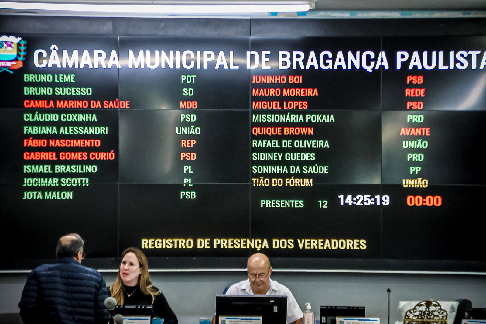 Ainda na sessão, foi solicitado o adiamento da votação do Projeto de Lei nº 23/2025, que pretende denominar a Área Institucional IV do Loteamento Villa Verde Bragança como “Francisca Lemes da Cunha Nogueira”.