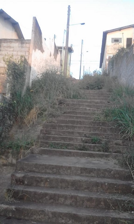 De acordo com os moradores, esse local está tomado por mato e lixo, o que atrai animais como ratos e escorpiões, entre outros. O leitor também disse à reportagem que é necessária a troca de lâmpadas dos postes, reforma da escada e a colocação de um corrimão.