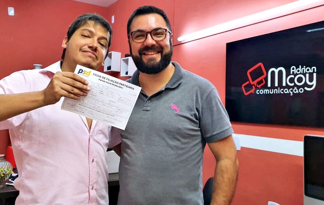 O publicitário Adrian Mcoy filiouse ao PSD (Partido Social Democrático) comandado em Bragança Paulista pelo vereador Basílio Zecchini, pré-candidato a prefeito. Mcoy inicia sua vida na política declarando que é pré-candidato a vereador nas eleições deste ano pelo PSD. Boa sorte!