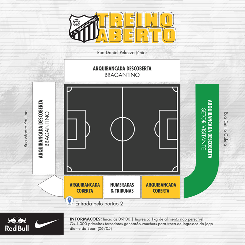 O portão será aberto às 9h00 e os primeiros mil torcedores ganharão vouchers para o jogo contra o Sport (os vouchers poderão ser trocados na bilheteria apenas no dia do jogo).