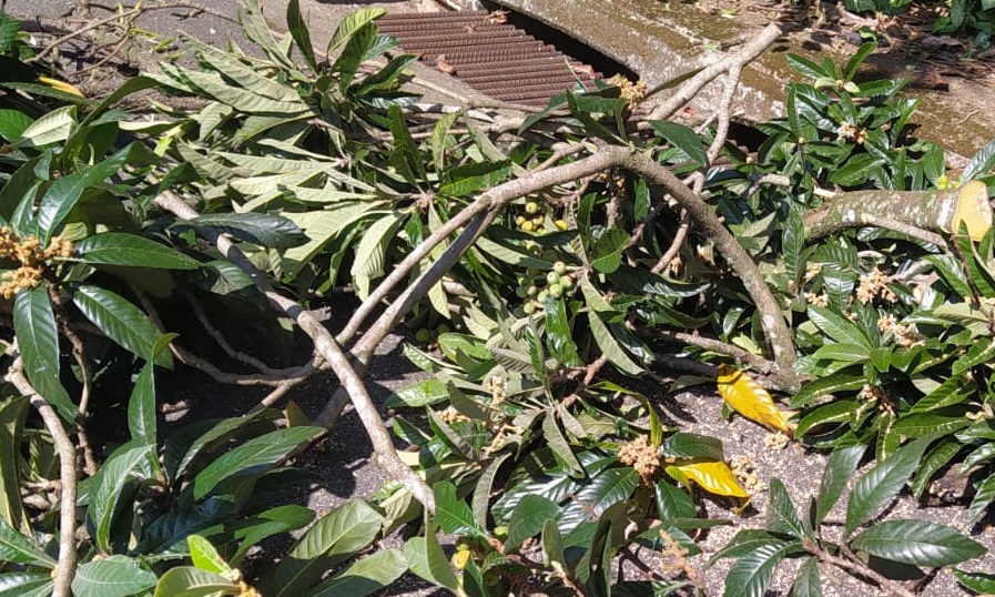 Galhos com nêsperas, as famosas ameixas amarelas, restaram espalhados pelo chão