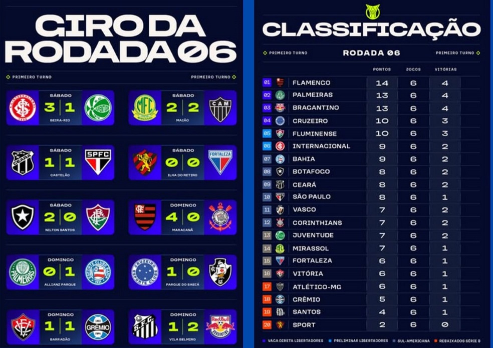Com o resultado, o Braga chegou a 13 pontos e manteve a terceira colocação no Brasileirão, apenas um ponto atrás do líder Flamengo, que goleou o Corinthians por 4 a 0 na rodada. A derrota do Palmeiras para o Bahia (1 a 0) e a vitória do Cruzeiro sobre o Vasco (1 a 0) completaram a configuração do atual G4 do campeonato.