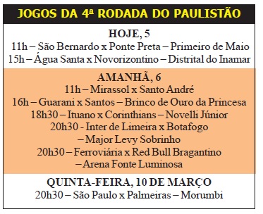 O Massa Bruta volta a campo pela quarta rodada do Campeonato Paulista na noite deste domingo, 6, para encarar a Ferroviária, que lidera o Grupo B, com cinco pontos. A partida está confirmada para as 20h30, na Arena Fonte Nova.