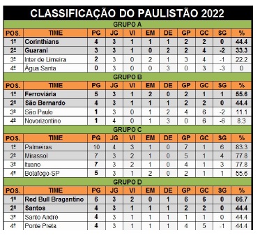 Com o resultado, o Braga emplaca sua segunda vitória seguida no Campeonato Paulista de 2022, e volta à liderança do Grupo D, com seis pontos ganhos, dois a mais que os seus três concorrentes diretos pela classificação, Santos, Santo André e Ponte Preta, que estão empatados, com quatro pontos cada.