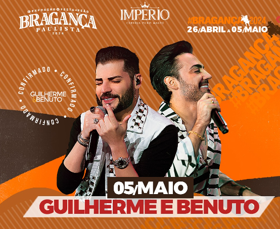 Além dos shows de Luan Santana e Péricles, que acontecem neste sábado, 4, a dupla Guilherme & Benuto se apresentará amanhã, 5, encerrando a programação musical com chave de ouro – lembrando que a entrada para o show deste domingo é gratuita.