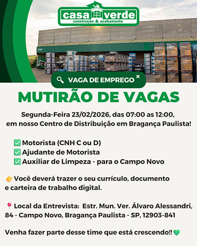 VAGA DE TRABALHO EM BRAGANÇA PAULISTA