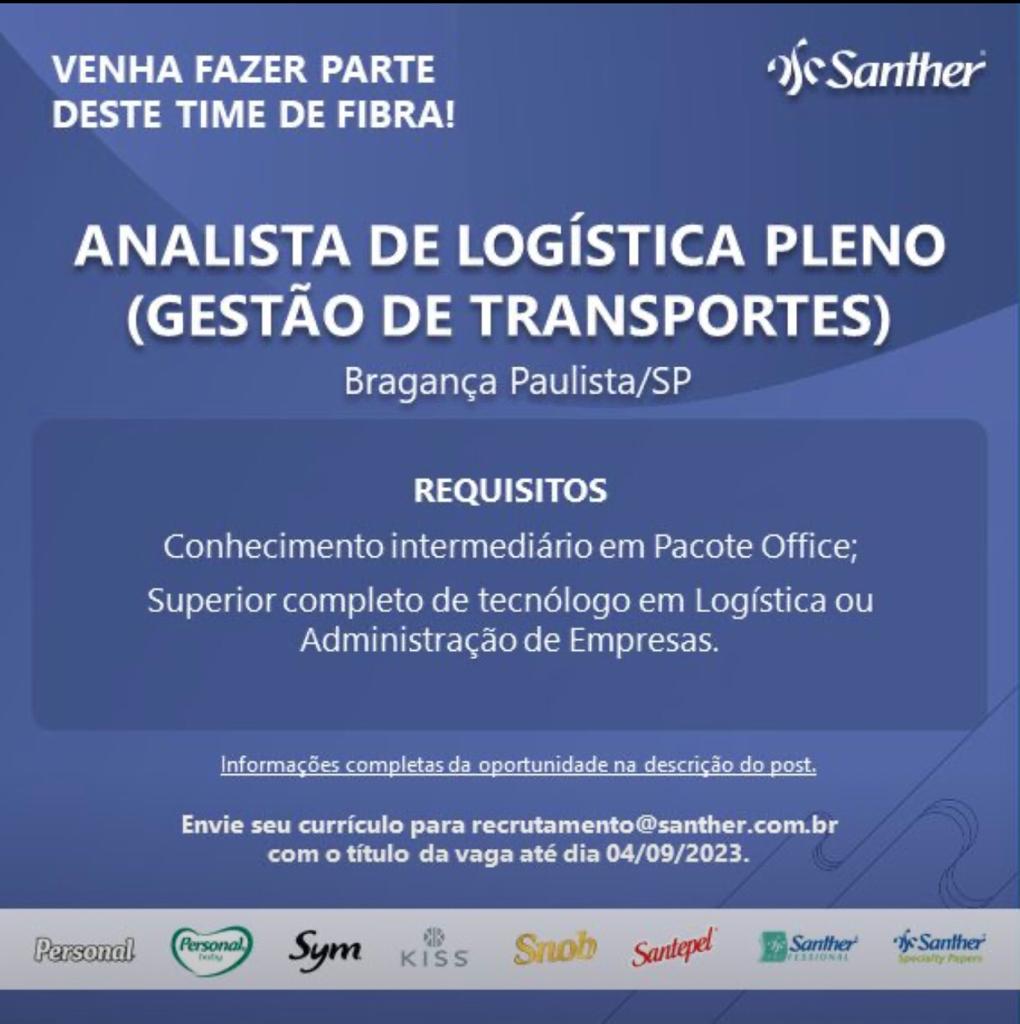 A Santher, líder na produção de bens de consumo, está oferecendo uma oportunidade de emprego para aqueles que buscam iniciar uma carreira promissora. A empresa, administrada pelas japonesas Daio Paper e Marubeni Corporation, com mais de 82 anos de história e sede em Bragança Paulista, no interior de São Paulo, está contratando um Analista de Logística Pleno especializado em Gestão de Transportes.