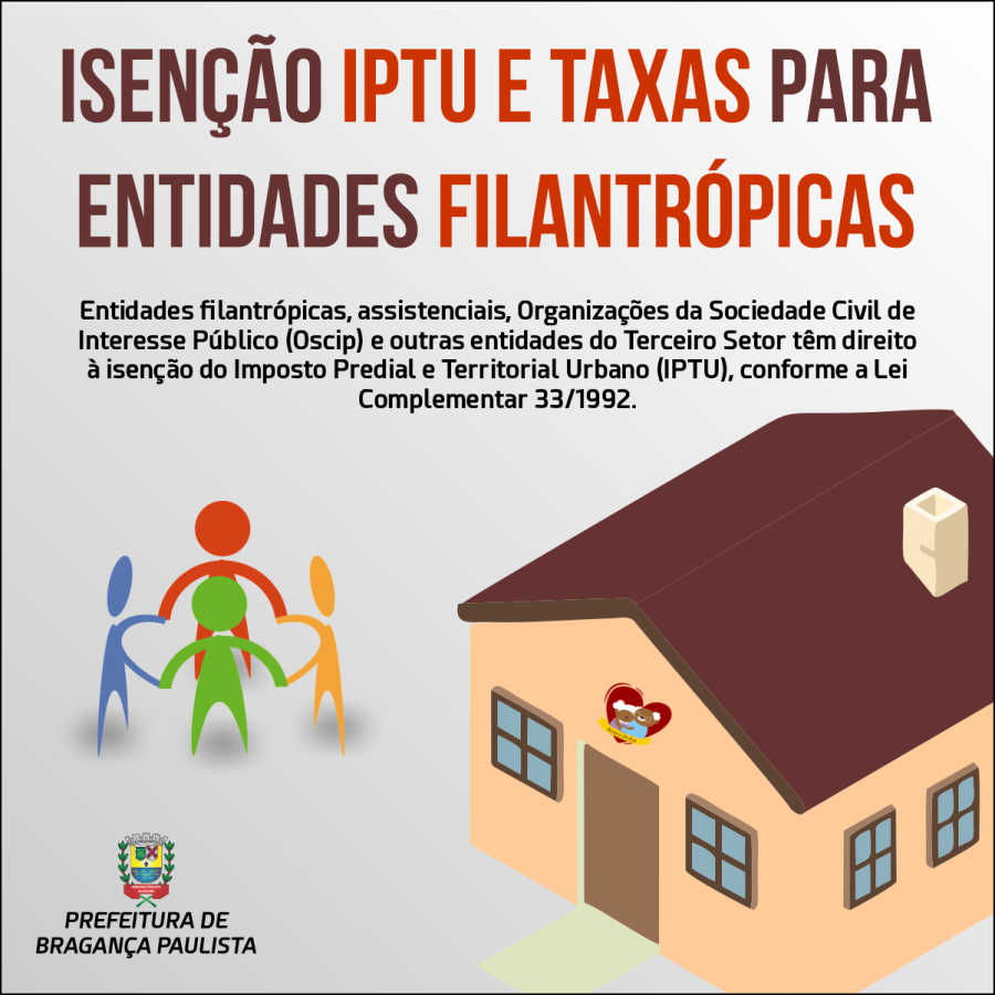 Entidades filantrópicas, assistenciais, Organizações da Sociedade Civil de Interesse Público (Oscip) e outras entidades do Terceiro Setor têm direito à isenção do Imposto Predial e Territorial Urbano (IPTU), conforme a Lei Complementar 33/1992, informa a Prefeitura.
