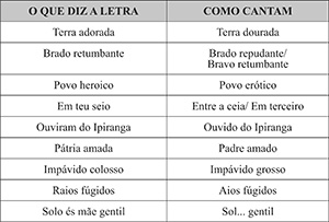 Mais do que lembrar da letra, o complicado mesmo é entendê-la. Muitos acham o hino muito difícil, porque ele tem palavras complicadas, como “retumbante” e cometem erros ao cantar o hino. Vejamos: