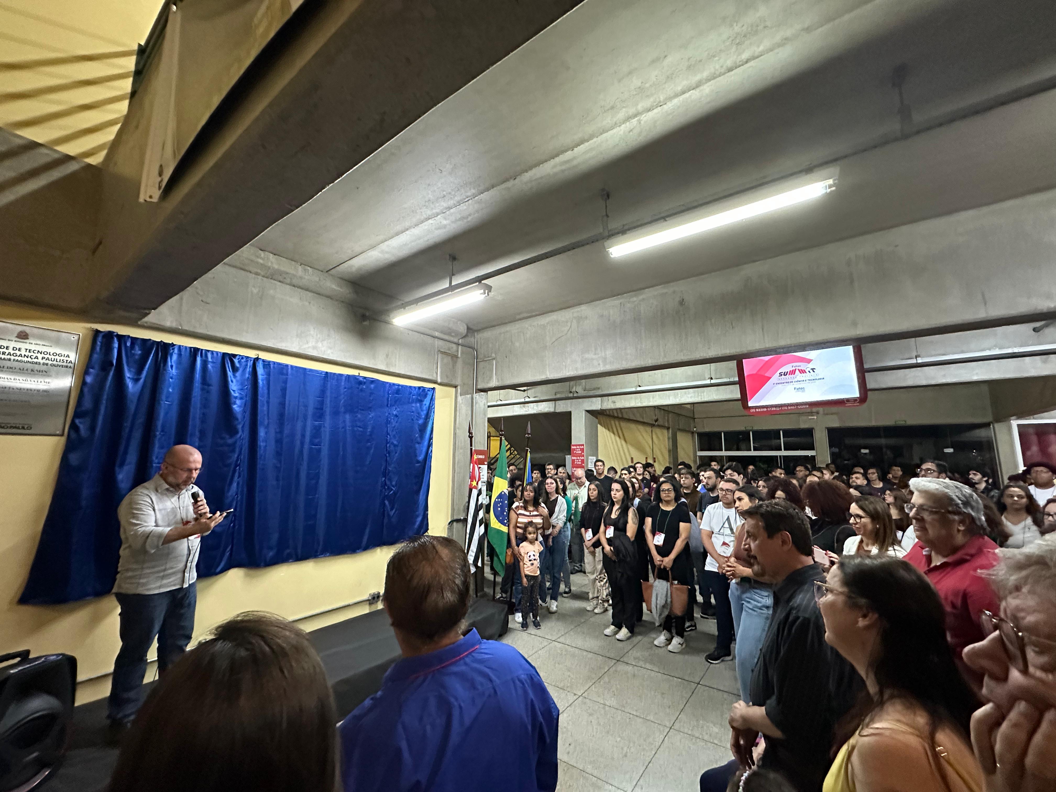 Durante a solenidade, a instituição prestou uma homenagem especial ao jornalista Omair Fagundes de Oliveira, patrono que dá nome à unidade. O diretor da Fatec, professor Dr. Vagner Tavares, conduziu a homenagem e destacou a importância de eternizar o nome de um dos maiores comunicadores da história bragantina.