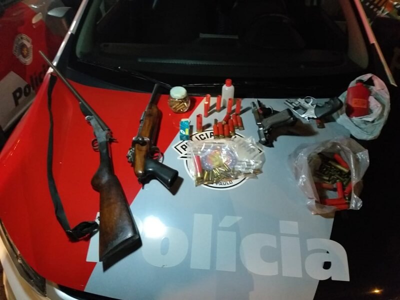 Na residência do vendedor de armas, foram encontradas uma espingarda calibre 32, cinco munições intactas calibre 28, 13 munições calibre 22, quatro munições calibre 24, uma munição calibre 36, 44 munições deflagradas calibre 22, 37 munições deflagradas calibre 38, 13 munições deflagradas calibre 32, duas munições deflagradas calibre 12, cinco munições deflagradas calibre 24, quatro munições deflagradas calibre 32, duas munições deflagradas calibre 28, duas munições deflagradas calibre 36, 14 espoletas e três frascos com pólvoras.