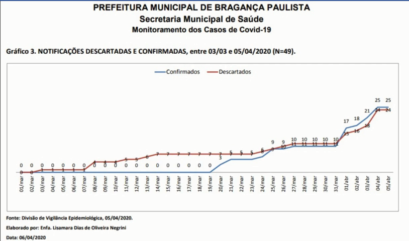 Casos confirmados - O município tem 91 casos de Covid-19 (coronavírus), sendo 24 descartados, 26 confirmados e 41 em investigação. Um paciente que estava internado na UTI faleceu na segunda-feira, 6, trata-se de um homem de 63 anos.