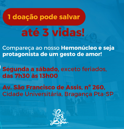 O Hospital Universitário São Francisco (HUSF) está fazendo um apelo urgente a todos os moradores de Bragança Paulista e região para doação de sangue, independente do tipo sanguíneo. A ação visa aumentar os estoques do Hemonúcleo do hospital, que atualmente opera com níveis críticos de sangue.