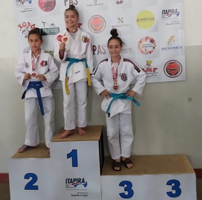 A atleta Maria Eduarda (Duda) competiu na categoria Sub-11 Leve e ficou com a terceira colocação, conquistando a medalha de bronze.