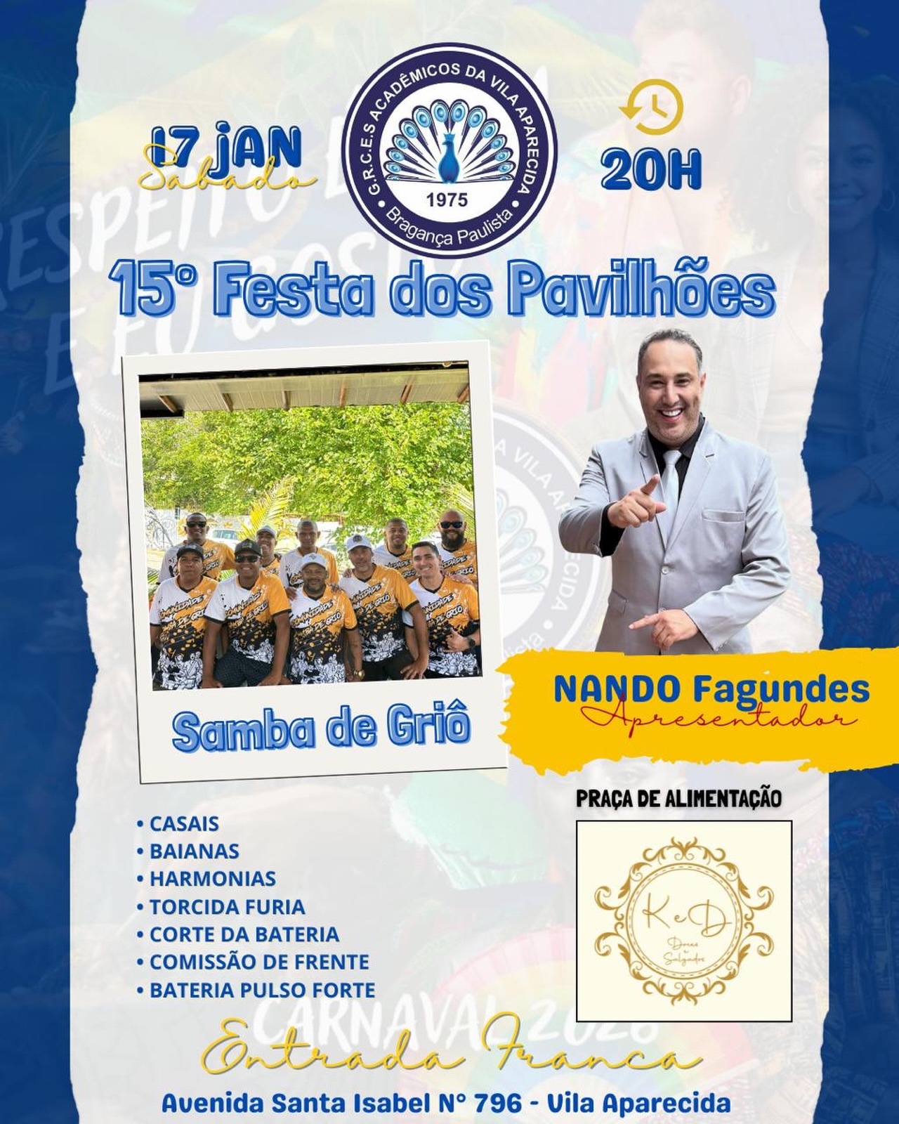 A escola de samba Acadêmicos da Vila, um dos pilares do Carnaval bragantino, prepara-se para um dos momentos mais solenes e aguardados de seu calendário pré-carnavalesco. A agremiação realiza no próximo sábado, 17, a 15ª Festa dos Pavilhões, evento que homenageia a história e a força das bandeiras das escolas de samba convidadas, simbolizando a união e o respeito entre as coirmãs do samba.