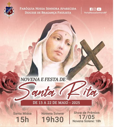 A Paróquia Nossa Senhora Aparecida, localizada na Rua Professor Luiz Nardy, 809 – Vila Aparecida, se prepara para celebrar, entre os dias 13 e 21 de maio, a tradicional Festa de Santa Rita de Cássia, conhecida como a Santa das Causas Impossíveis. Santa Rita, que pertence à ordem agostiniana, será homenageada com uma programação especial que une fé, cultura, confraternização e solidariedade.