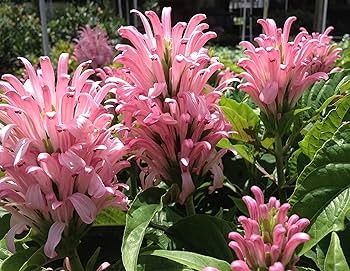 Jacobínia - Justiciacarnea– para quem tem um bom espaço, esta planta é excelente, tem crescimento rápido e vigoroso. As inflorescências são muito vistosase atrativas para os beija-flores.
