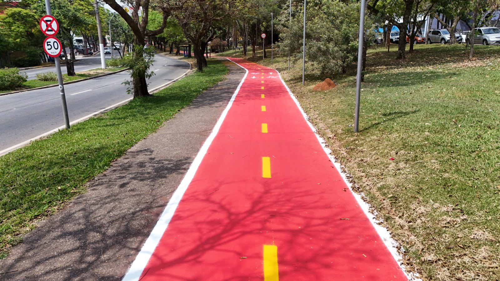 Também foram ampliadas no município opções de mobilidade ativa. Atualmente, são seis ciclovias e ciclofaixas, totalizando 18,5 km de extensão, e uma sétima via ciclável em fase de conclusão na Avenida Europa, ligando o Lago do Orfeu ao prolongamento da Rua Oswaldo Assis Gonçalves, o que proporciona lazer, transporte sustentável e qualidade de vida.