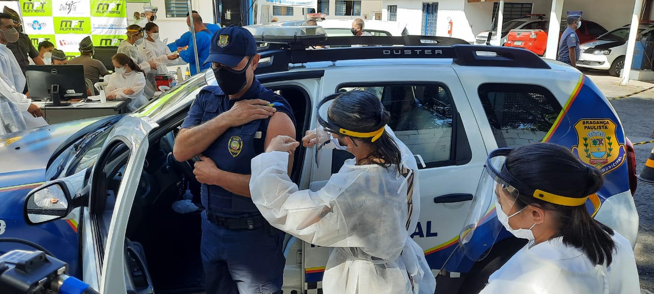 Na segunda. 5, conforme anunciado pelo governo estadual, agentes das Forças de Segurança Pública começaram a ser imunizados contra o Covid-19. Em Bragança Paulista, a vacinação é válida para os agentes da Polícia Militar, Corpo de Bombeiro, Polícia Ambiental, Polícia Rodoviária, Polícia Rodoviária Federal e todos da GCM (Guarda Civil Municipal).