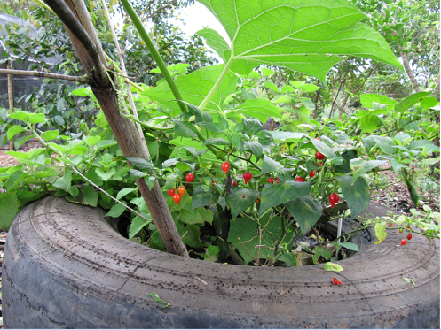 Ah, e você também pode fazer uma mini hortinha, em um pneu bem usado, com as crianças.