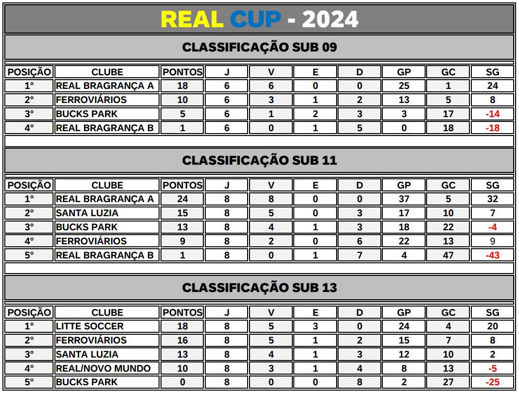 No último domingo, 10, ocorreram as quatro últimas partidas da fase de grupos da Real Cup 2024, competição disputada nas categorias Sub-9, Sub-11 e Sub-13.