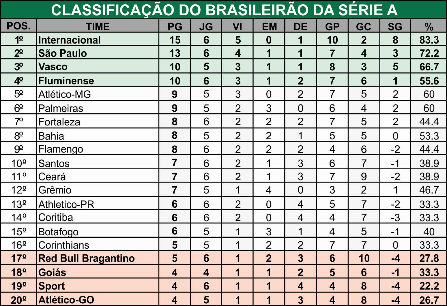 Já o Bragantino vem de duas derrotas seguidas que foram suficientes para o time entrar na zona do rebaixamento. Com apenas uma vitória, dois empates e três derrotas, o Braga é o 17º colocado na classificação do campeonato nacional.
