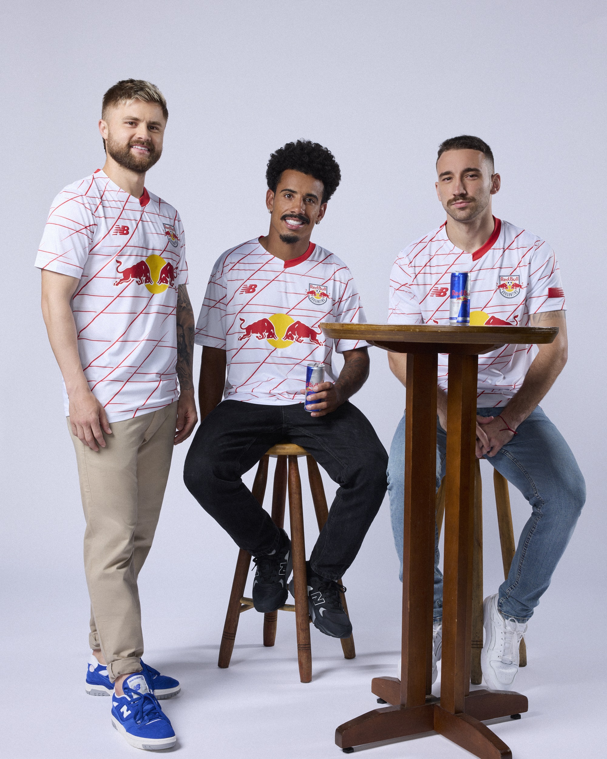 A parceria entre o Red Bull Bragantino e a marca norte-americana, que é fornecedora oficial de material esportivo e patrocinadora do clube, resultou em um kit que combina tradição e futuro. A camisa 1, destaque da coleção, será utilizada principalmente nos jogos como mandante. Feita de poliéster, a peça mantém a cor branca como predominante, mas com a novidade dos detalhes em vermelho, conferindo um design mais moderno ao uniforme. A gola em formato de V e a barra assimétrica contribuem para o visual contemporâneo da camisa, inspirada no futuro e na nova era do clube.