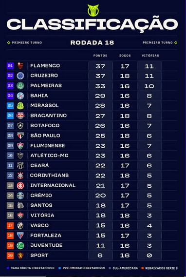 Apesar da fase negativa, o Bragantino ocupa a sexta colocação na tabela, com 27 pontos. No entanto, a equipe tem dois jogos a mais em relação a adversários diretos na luta pelo G4, o que aumenta a necessidade de um bom resultado diante de sua torcida.