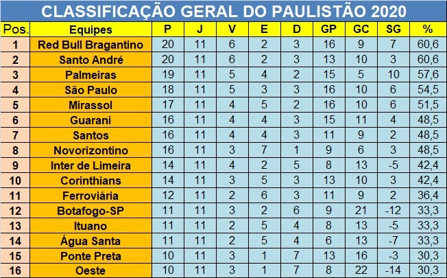 Na reestréia do Campeonato Paulista da Série A1, o Red Bull Bragantino não tomou conhecimento do São Paulo F. C., e mesmo jogando em pleno Estádio do Morumbi, bateu os donos da casa de virada pelo placar de 3 a 2, com gols de Matheus Jesus, Morato e Arthur. O atacante Pablo fez os dois gols do Tricolor Paulista. A partida encerrou a penúltima rodada da fase de grupos do Paulistão 2020, e o Massa Bruta com os três pontos conquistados na noite desta quinta-feira, 23, assumiu a liderança geral do campeonato estadual com 20 pontos ganhos, superando o Santo André nos critérios de desempates. Vale ressaltar que Braga neste ano no Paulistão não perdeu para os times considerados grandes. Foi um empate com o Santos na Vila Belmiro, uma vitória sobre o Palmeiras no Nabizão e a vitória de hoje diante do São Paulo no Morumbi.