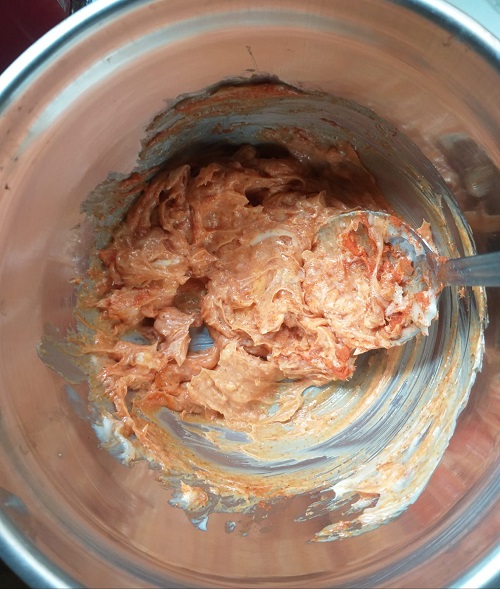 Enquanto elas cozinham, amasse os dentes de alho e junte-os na margarina, misture a páprica e mexa com colher, formando uma pastinha, e reserve.