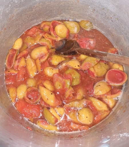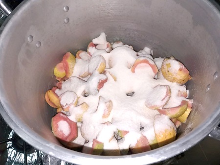 Doces à base de fruta dependem muito da doçura natural delas. A dica é: coloque sempre menos açúcar, experimente e, se estiver faltando, vá completando as colheradas para não adoçar demais.
