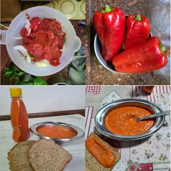 Pique a cebola e o pimentão grosseiramente. Coloque tudo no liquidificador e bata até ficar um creme. Coloque em vidro e mantenha em geladeira