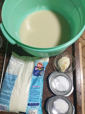 - 3 copos (tipo requeijão- 250 ml) de água – temperatura ambiente – na vasilha