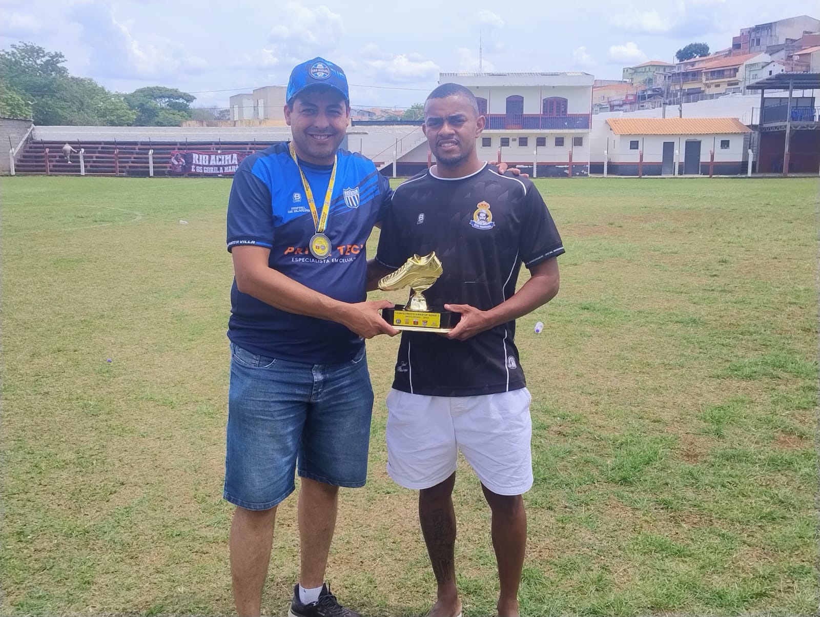 Vereador Rafael de Oliveira entregou o trofeu de artilheiro para o jogador Valdomiro do Real Madruga - Foto: Secom