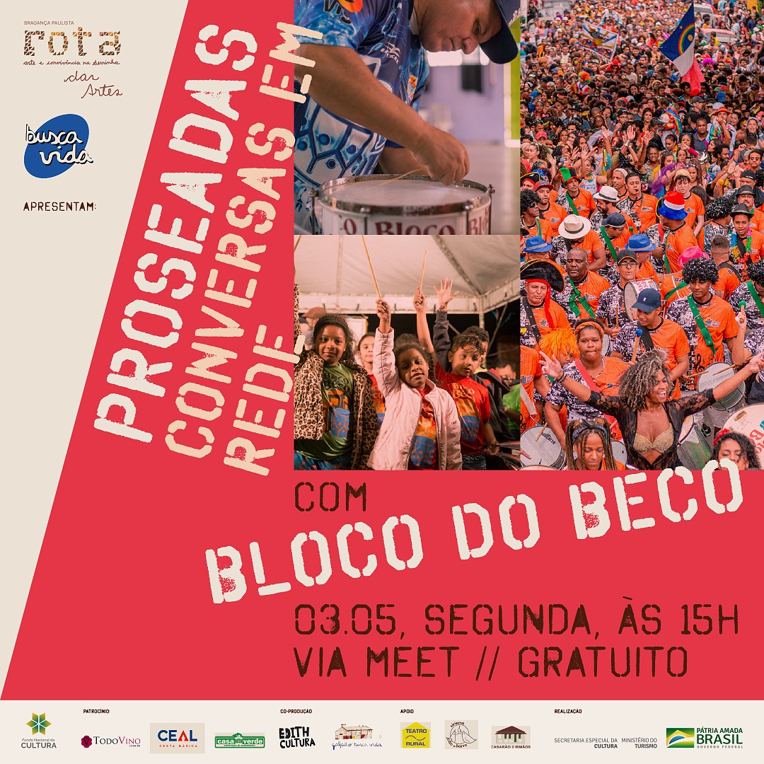No segundo encontro do “Proseadas: conversas em rede”, o projeto Rota das Artes Serrinha convida a associação cultural Bloco do Beco (SP). O bate-papo acontece na segunda-feira, 3, às 15h, via Google Meet.