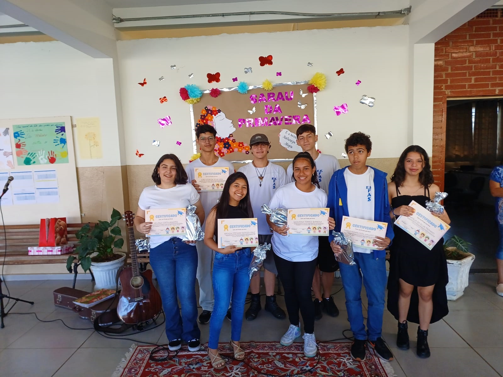 O evento premiou os estudantes vencedores do concurso realizado pela ASES - Associação dos Escritores de Bragança Paulista, que este ano teve como tema Defesa do Meio Ambiente e dos Povos Originários, no qual a escola ficou em primeiro lugar nas categorias 2ª e 3ª séries do Ensino Médio, além conquistar o segundo lugar e duas menções honrosas na categoria 1ª série do Ensino Médio.
