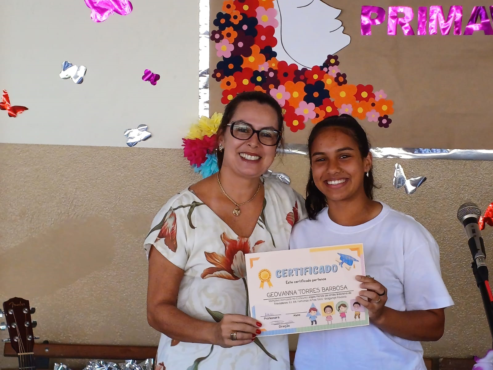Maria Vitória Hespanhol, autora do poema Curumim, e a Profa. Edilene Souza