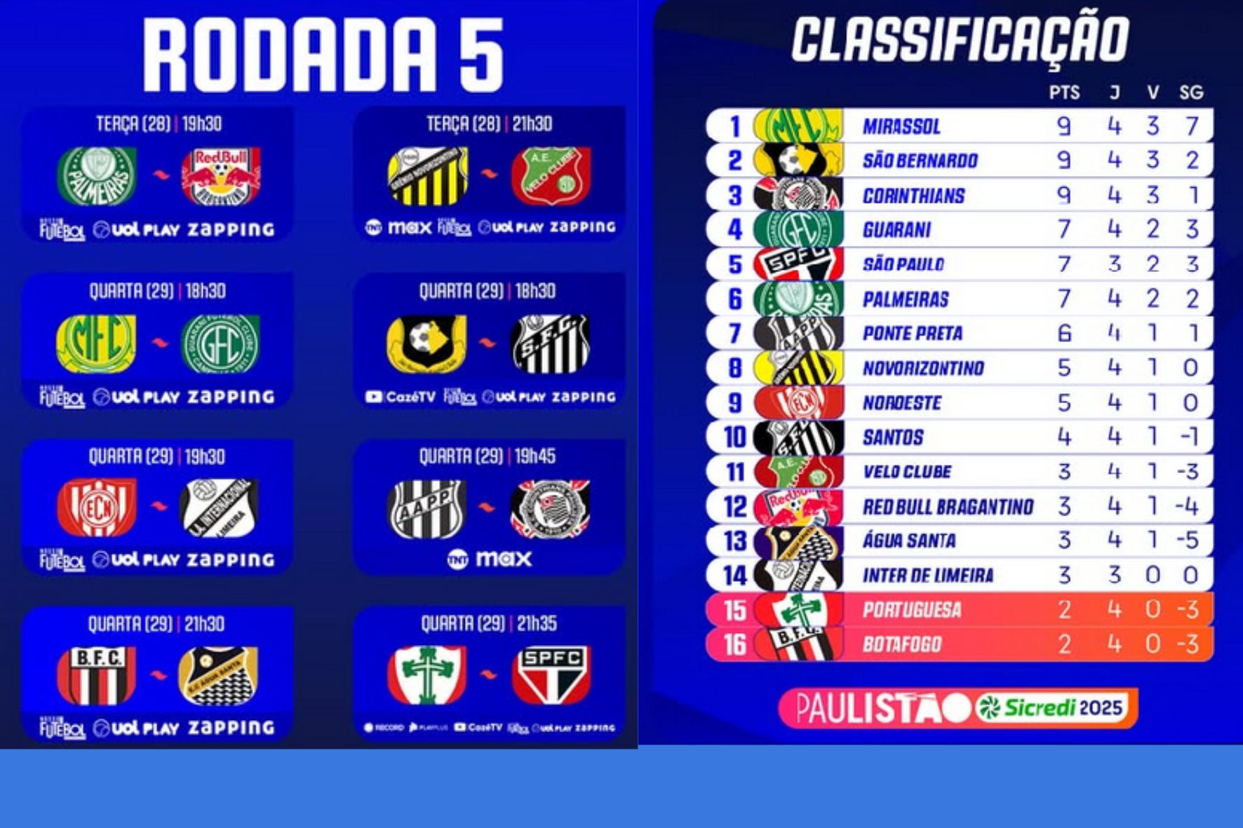 Na noite desta terça-feira, 28, o Red Bull Bragantino encara o Palmeiras em um confronto pela quinta rodada do Campeonato Paulista da Primeira Divisão 2025. A partida será realizada às 19h30 (horário de Brasília), no Allianz Parque, em São Paulo, e será transmitida pelos canais Uol Play, Nosso Futebol e Zapping TV.