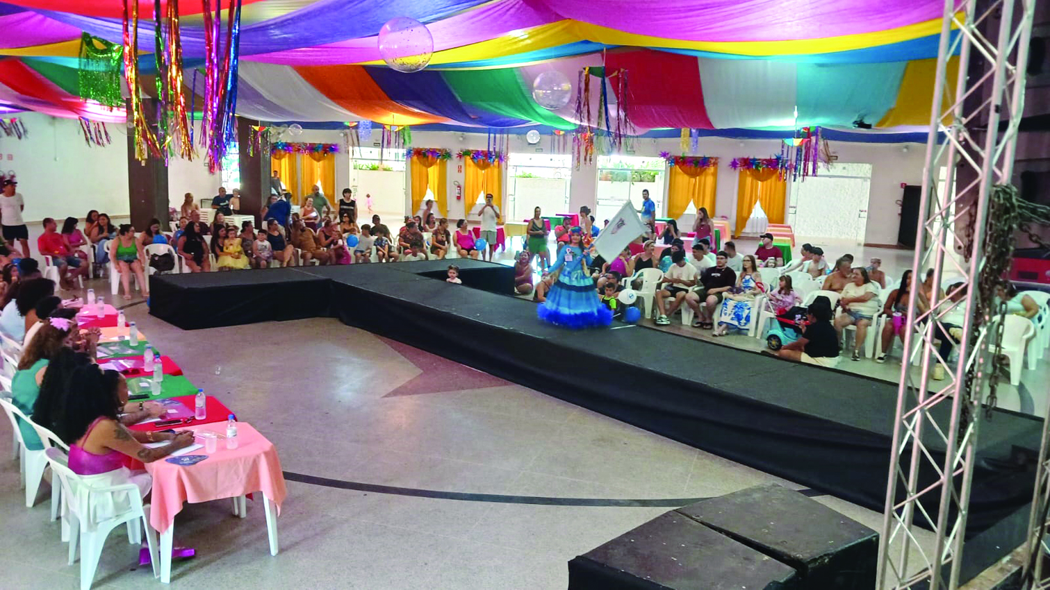 Os bailes noturnos foram comandados pela Banda Sexta Dimensão, que animou os foliões com repertório variado e muita energia, garantindo diversão do início ao fim. Já nas matinês, as crianças e famílias aproveitaram uma programação especial com os Fanfarreiros, além da animação do professor de ritmos Binho e do tradicional Concurso de Fantasias, que premiou os participantes nas duas tardes.