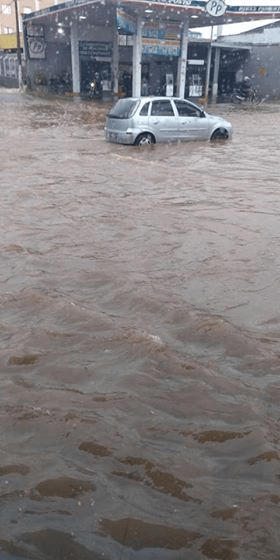 A região da Avenida Antônio Pires Pimentel, no cruzamento com a Travessa Itália, e o entorno da rodoviária antiga também ficaram alagados.