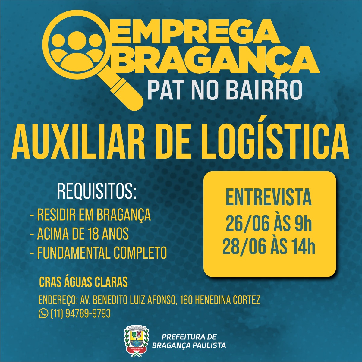 No próximo semana, o Programa Emprega Bragança, desenvolvido pela Prefeitura de Bragança Paulista em parceria com a Secretaria Municipal de Ação e Desenvolvimento Social, realizará mais um processo seletivo descentralizado por meio do PAT no Bairro. Desta vez, as vagas disponíveis são para o cargo de auxiliar de logística e as entrevistas acontecerão no CRAS Águas Claras.