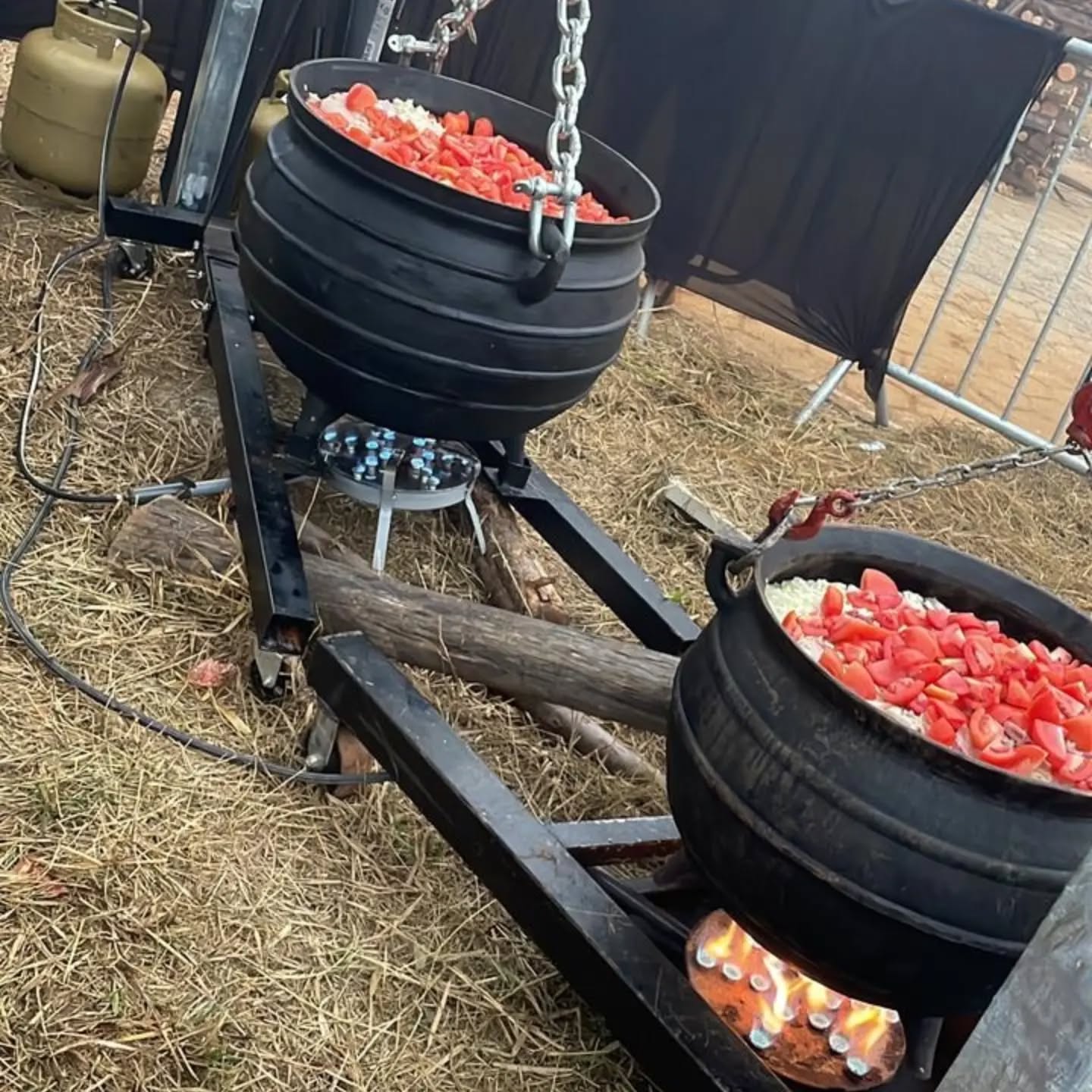 A trajetória também inclui participação em importantes festivais gastronômicos do país, como Bárbaros, Churrascada e Mr. Moo, onde Rafão passou a apresentar seu estilo único de cozinhar. Um dos grandes destaques de sua estrutura são os chamados “caldeirões de bruxa”, peças de ferro fundido que impressionam pelo tamanho e pela complexidade no manuseio. O maior deles, com capacidade para 140 litros, chega a pesar 182 quilos vazio.