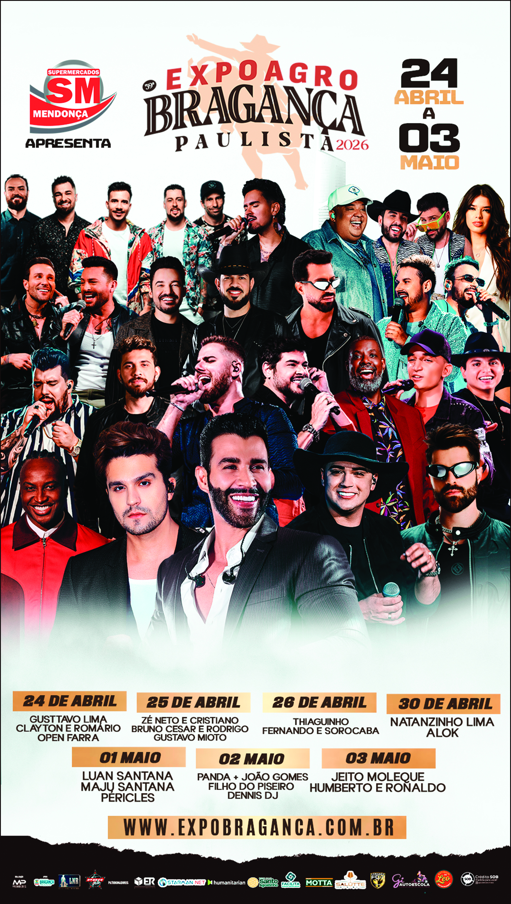 A 59ª Expoagro e a 32ª Festa do Peão de Boiadeiro de Bragança Paulista começam nesta sexta-feira, 24, prometendo movimentar a cidade com uma programação diversificada e a presença de grandes nomes da música nacional, como o cantor Gusttavo Lima, uma das atrações mais aguardadas da abertura.