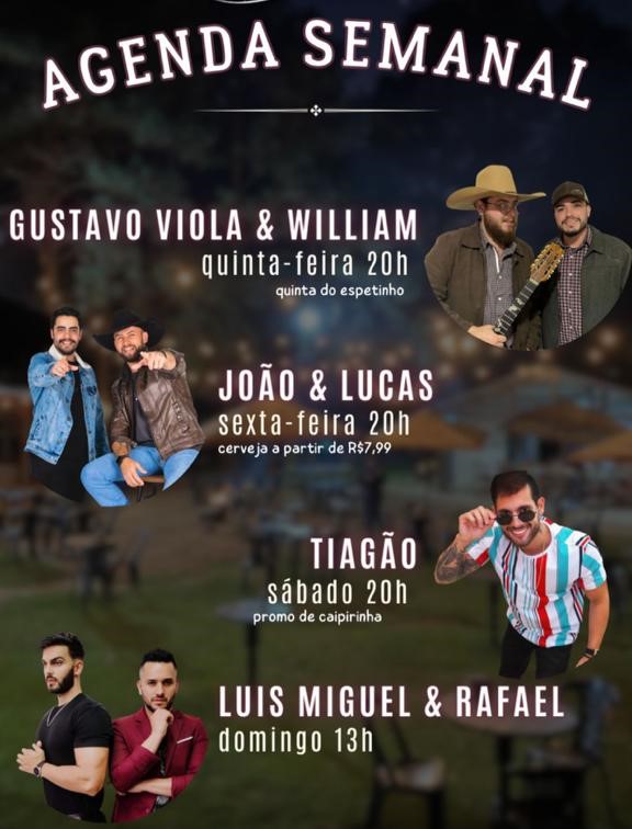 O Bar e Restaurante Rural Rincão Bragantino terá dois grandes shows neste fim de semana. Na noite deste sábado, 4, a animação ficará por conta do cantor Tiagão, que se apresentará a partir das 20h. Além disso, haverá promoção de caipirinha. Já no domingo, 5, a partir das 13h, a dupla Luis Miguel & Rafael estará no palco, animando o público do Rincão Bragantino. O estabelecimento está localizado na Estrada Antônio Moreno, no Bairro do Campo Novo.