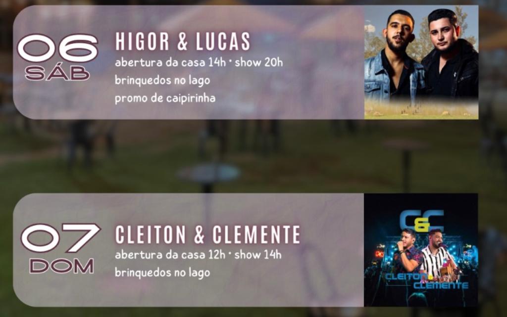 Neste primeiro final de semana de 2024, o Bar e Restaurante Rural Rincão Bragantino traz para seu público dois grandes shows. Hoje, a casa abre às 14h, e a dupla Higor & Lucas se apresenta às 20h. Haverá também promoção de caipirinha e brinquedos no lago. Amanhã, a partir das 12h, o Rincão Bragantino abre sua porteira para o “Almoço na Roça”, e às 14h, acontece o show da dupla Cleiton & Clemente. Neste domingo, estará disponível também o brinquedo no lago. O Bar e Restaurante Rural Rincão Bragantino fica localizado na Estrada Antônio Moreno, no Bairro Campo Novo. Para informações e reservas de mesa, ligue para: (11) 9 4486-4473 e fale com Aldo.