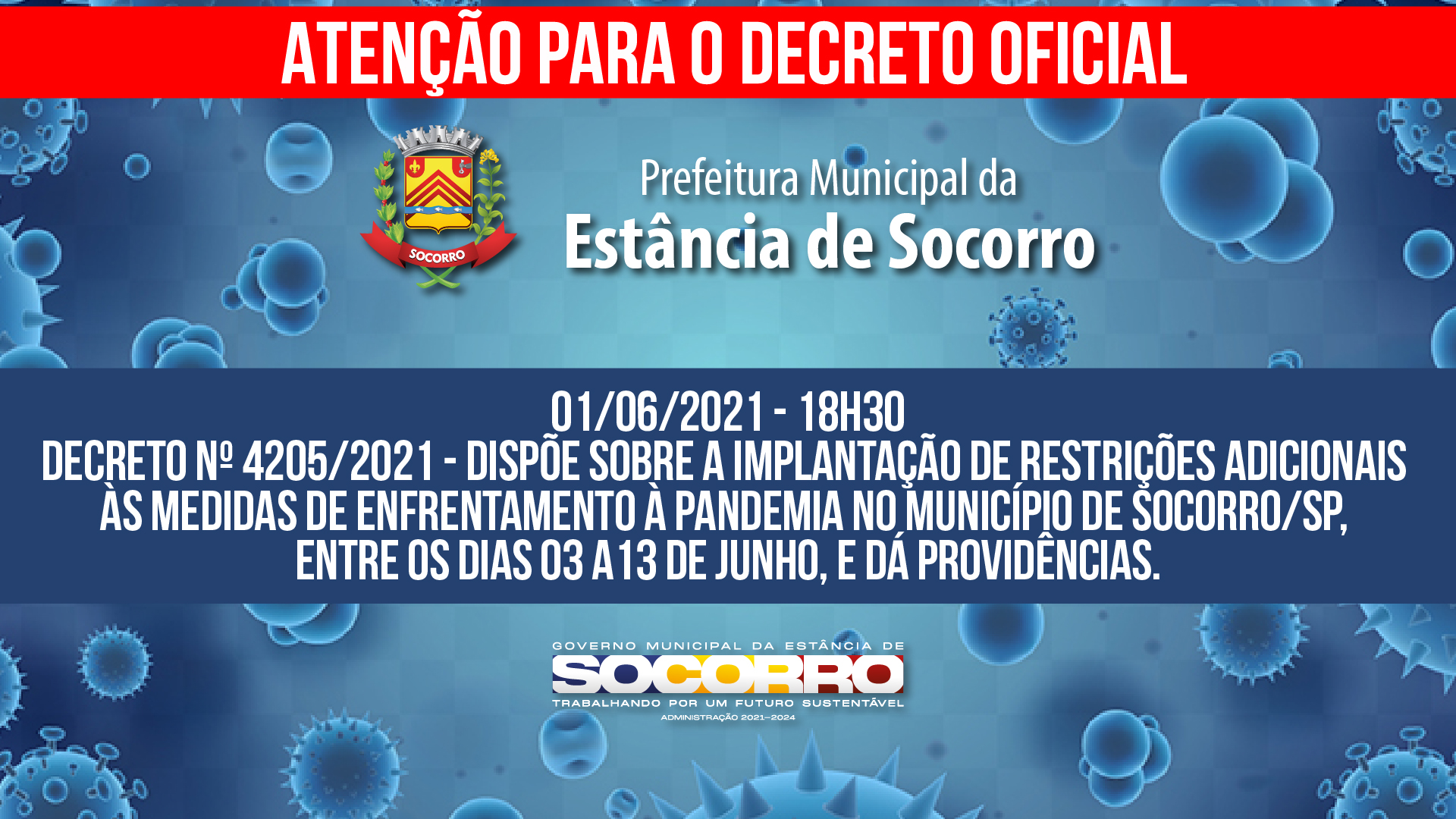 O motivo do decreto em Socorro é o mesmo: o aumento do número de casos de infectados pelo Coronavírus no município vem comprometendo drasticamente o atendimento na rede municipal de saúde, justifica a Prefeitura.