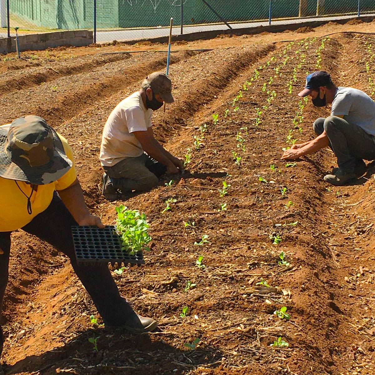 No terreno localizado no Conjunto Habitacional Mauro Baúna Del Roio, onde abriga as atividades do projeto Casulo, que é um centro de convivência de jovens adultos com deficiência intelectual (DI), a Divisão de Parques e Jardins está realizando a segunda etapa do plantio de mudas, sementes de hortaliças e vegetais na horta comunitária, que beneficiará os jovens atendidos pelo projeto, bem como a população mais necessitada.