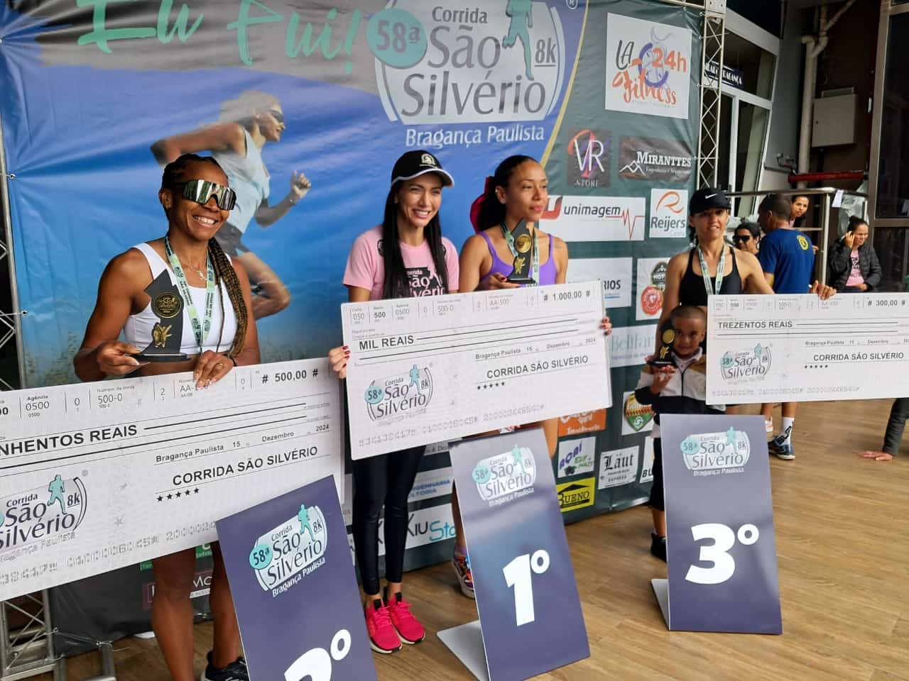 Os primeiros colocados no geral, tanto masculino quanto feminino, foram premiados com troféus, medalhas e valores em dinheiro. O 1º lugar geral recebeu R$ 1.000,00, o 2º lugar, R$ 500,00, e o 3º lugar, R$ 300,00. Além disso, os vencedores de cada categoria receberam R$ 100,00 como premiação. Resultados Gerais