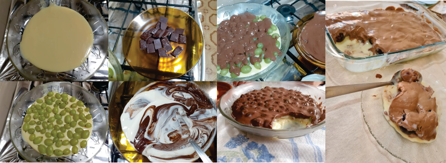 Hoje, temos a praticidade das docerias que, além de fazerem surpresa de uva, já dispõem de máquina para que saiam todos do mesmo tamanho e em quantidade industrial, mas não têm o mesmo sabor de antes. Atualmente, podemos usar a uva Thompson, que não tem caroço, é muito mais prática, mas maior praticidade ainda é esta invenção do doce na tigela.