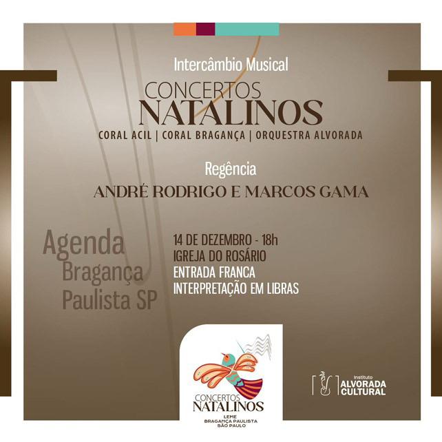 No próximo sábado, 14 de dezembro, às 18h, a Igreja do Rosário, localizada na Praça Princesa Isabel, no Centro de Bragança Paulista, será palco do Intercambio Musical “Concerto Natalino Especial”. O evento reunirá o Coral ACIL, o Coral Bragança e a Orquestra Alvorada em uma apresentação emocionante e única.